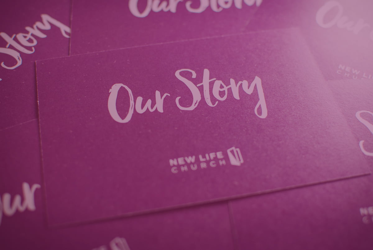 An image of the Our Story cards available at New Life...